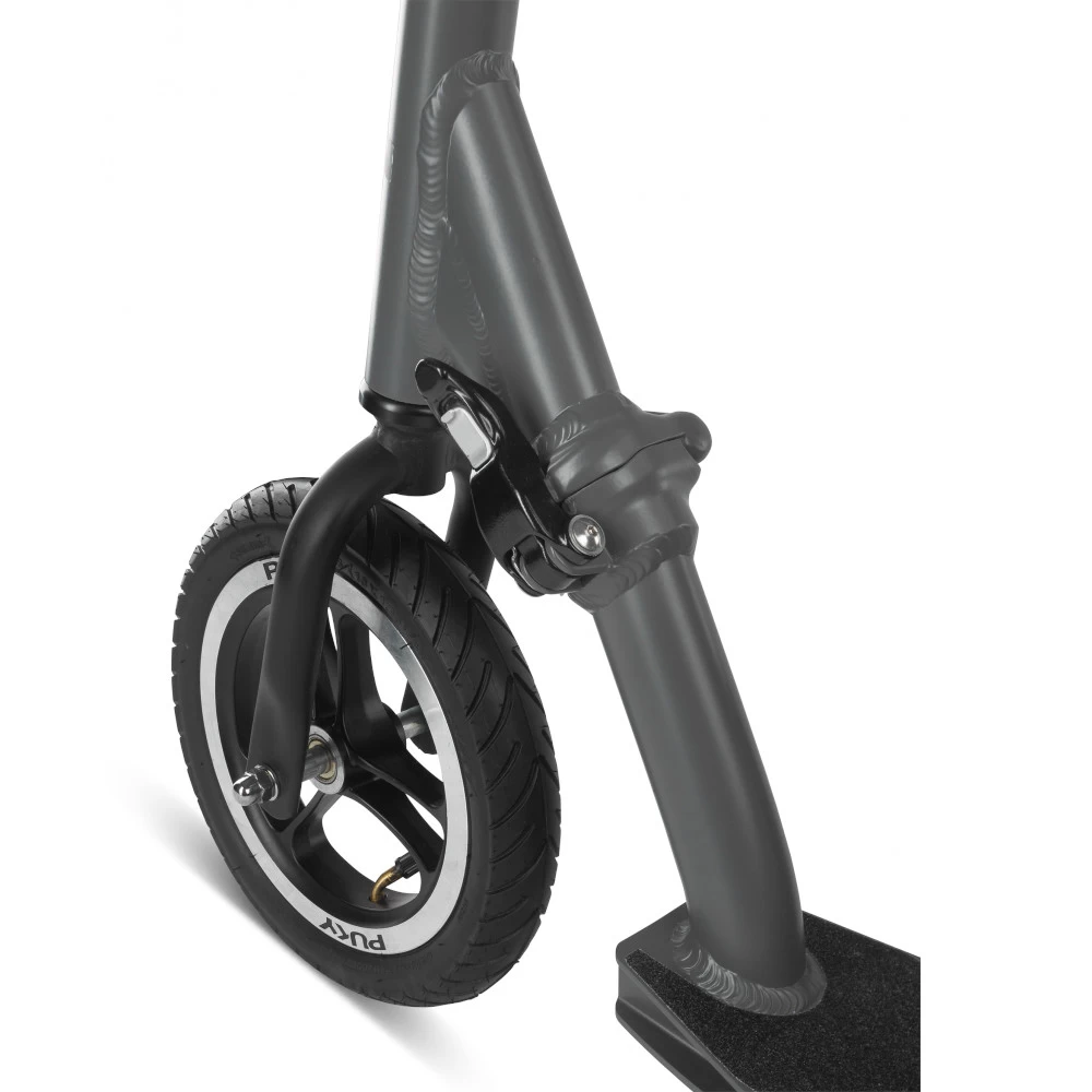 With the relaunch of the popular SpeedUs scooter, Puky relies on perfectly matched geometry and high-quality, extra-large wheels with pneumatic tires. The new generation has particularly balanced riding characteristics and is very quiet. It can be easily folded for transport and can be used from 5 years up to adulthood. The side stand is integrated into the large footboard to save space.